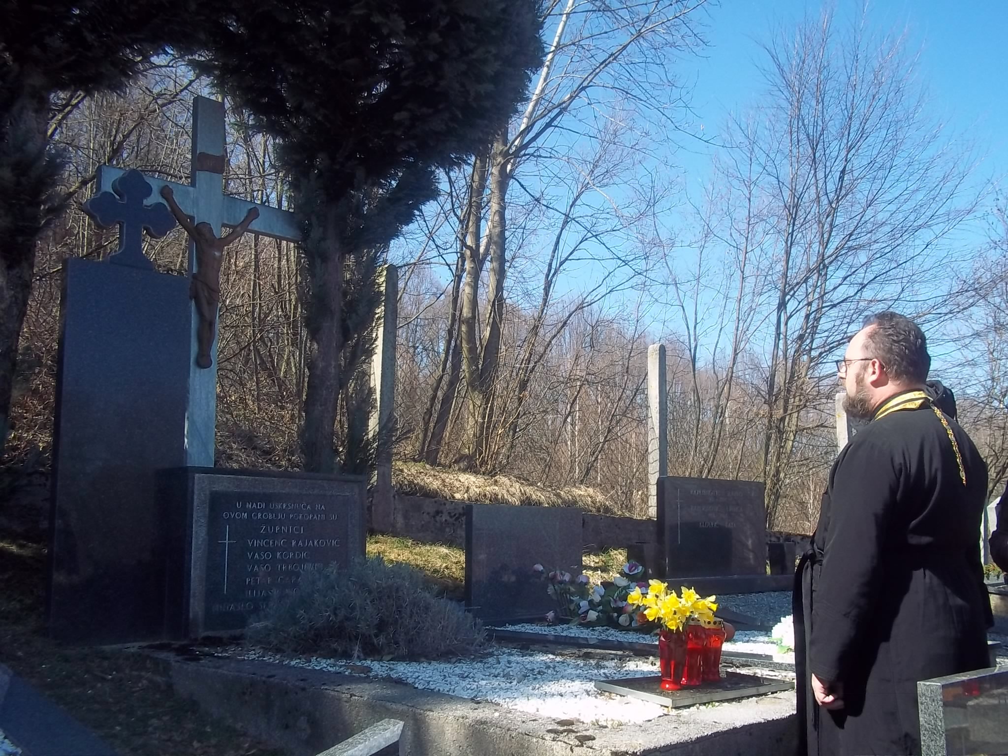 Apostolski adminstrator u molitvi ispred svecenicke grobnice u Stojdragi